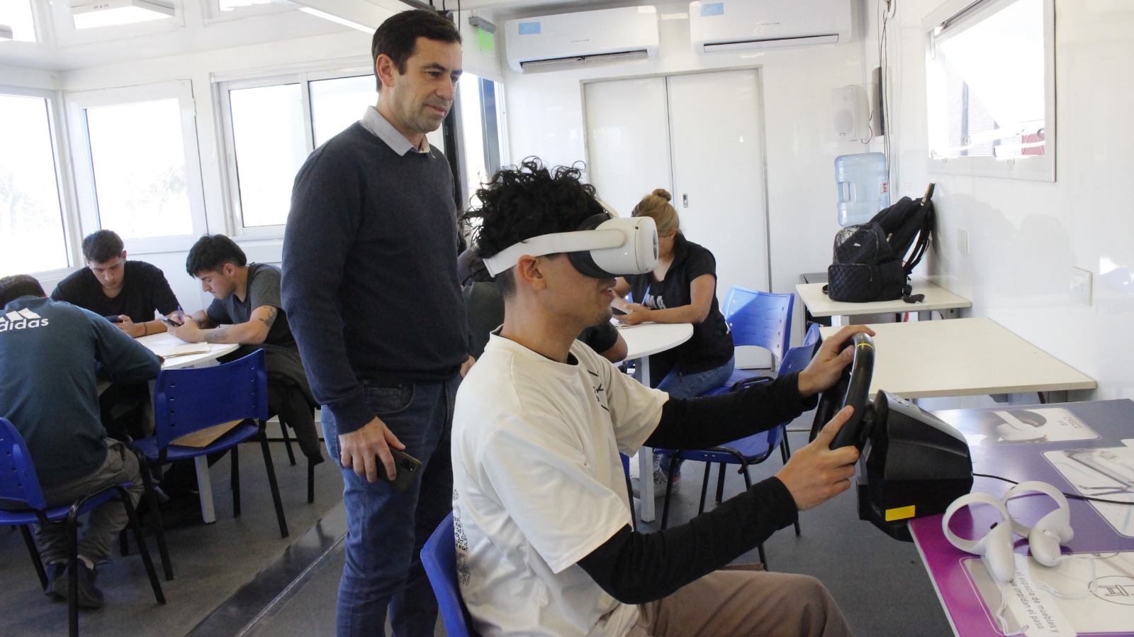 Valderrama destacó además el valor pedagógico de los simuladores:“mucha gente duda del entorno virtual, pero al probarlo se dan cuenta de lo realista que es. Buscamos que los estudiantes no solo aprendan en el simulador, sino que también tengan contacto con maquinaria real al finalizar el curso”.